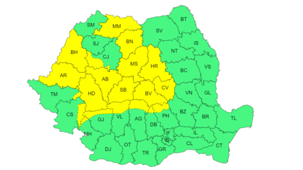 Atenționare meteo Cod Galben în zona de nord a județului Dâmbovița