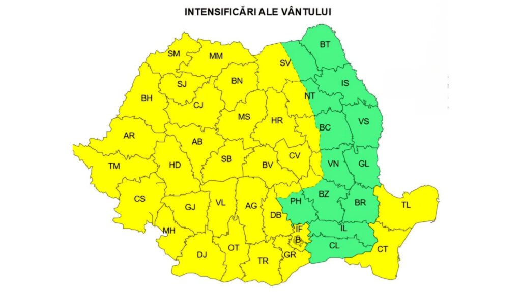 Prima atenționare este valabilă până pe 24 octombrie, ora 21:00, perioadă în care se vor înregistra rafale de vânt cu viteze între 50 și 70 km/h în cea mai mare parte a județului. În zona montană înaltă, viteza vântului poate urca până la 90–120 km/h, generând un disconfort accentuat și condiții dificile pentru transportul rutier.