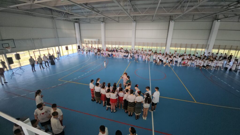 Evenimentul s-a desfășurat în sala de sport a localității, care a devenit neîncăpătoare pentru sutele de copii, cadre didactice, părinți și invitați speciali prezenți la celebrare. Atmosfera a fost una vibrantă, plină de emoție și entuziasm.