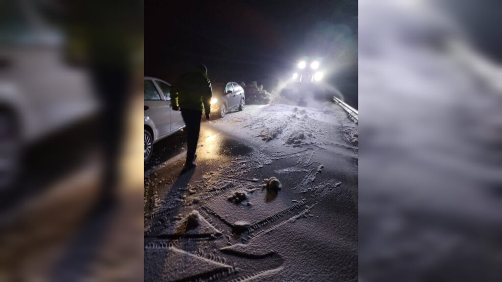 Imaginile surprinse în zona Luica arată amploarea fenomenelor meteo, cu carosabil acoperit de zăpadă și vizibilitate redusă din cauza rafalelor puternice de vânt.