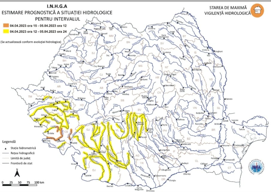 Institutul National de Hidrologie si Gospodarire a Apelor a emis un mesaj de atenționare COD GALBEN valabil în intervalul 04.04.2023 ora 12:00 – 05.04.2023 ora 24:00, pentru râul Dâmboviţa- bazinul superior (judeţele: Argeş şi Dâmboviţa).
