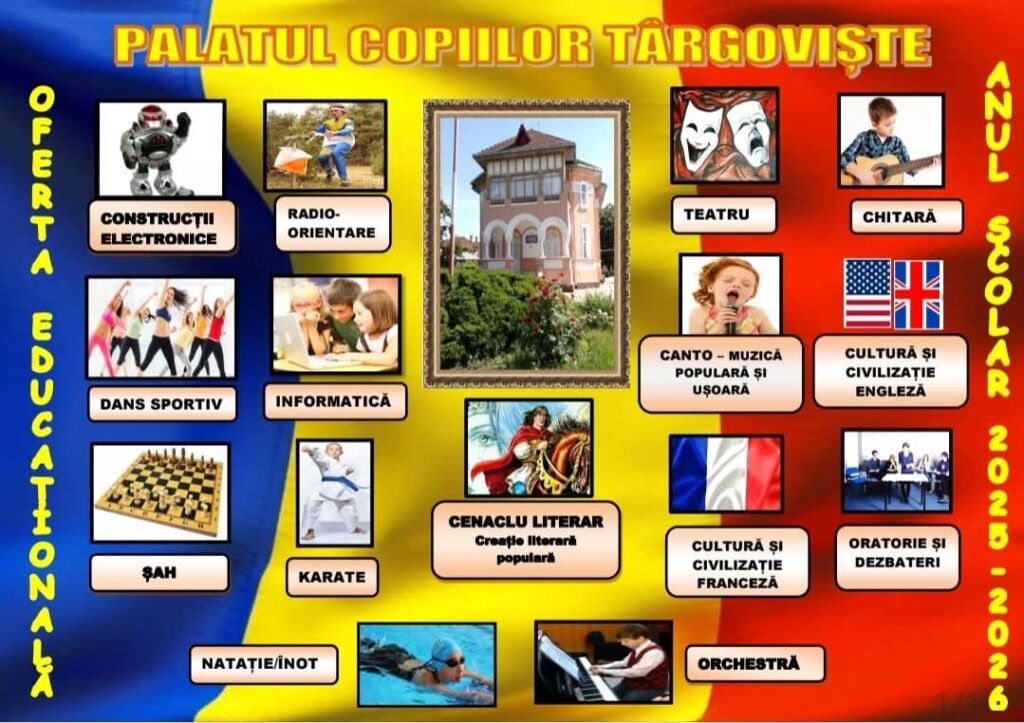 Începând cu data de 4 august, părinții și copiii sunt așteptați să se înscrie la activitățile educative și recreative oferite de Palatul Copiilor Târgoviște pentru anul școlar 2025–2026. O oportunitate excelentă pentru dezvoltarea creativității, abilităților practice și sociale ale celor mici, într-un cadru educațional prietenos și bine organizat.