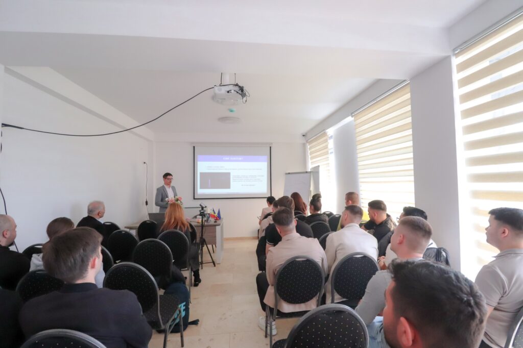 Întâlnirea a avut loc în sala de conferințe a Hotelului Del Ponte din Târgoviște și a reunit studenți, cadre didactice și reprezentanți ai mediului de afaceri și ai instituțiilor de specialitate.